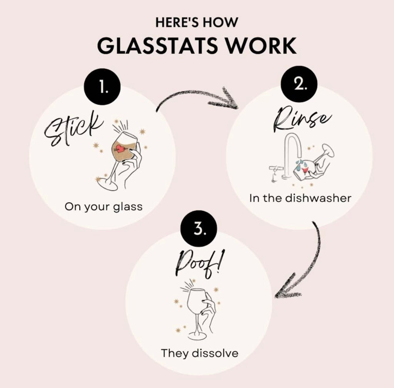 Use GlassTats when you need to know whose glass is whose, or to add flair to your Insta posts. Our dissolvable drink markers stick on any glass and dissolve under warm water or in the dishwasher.
