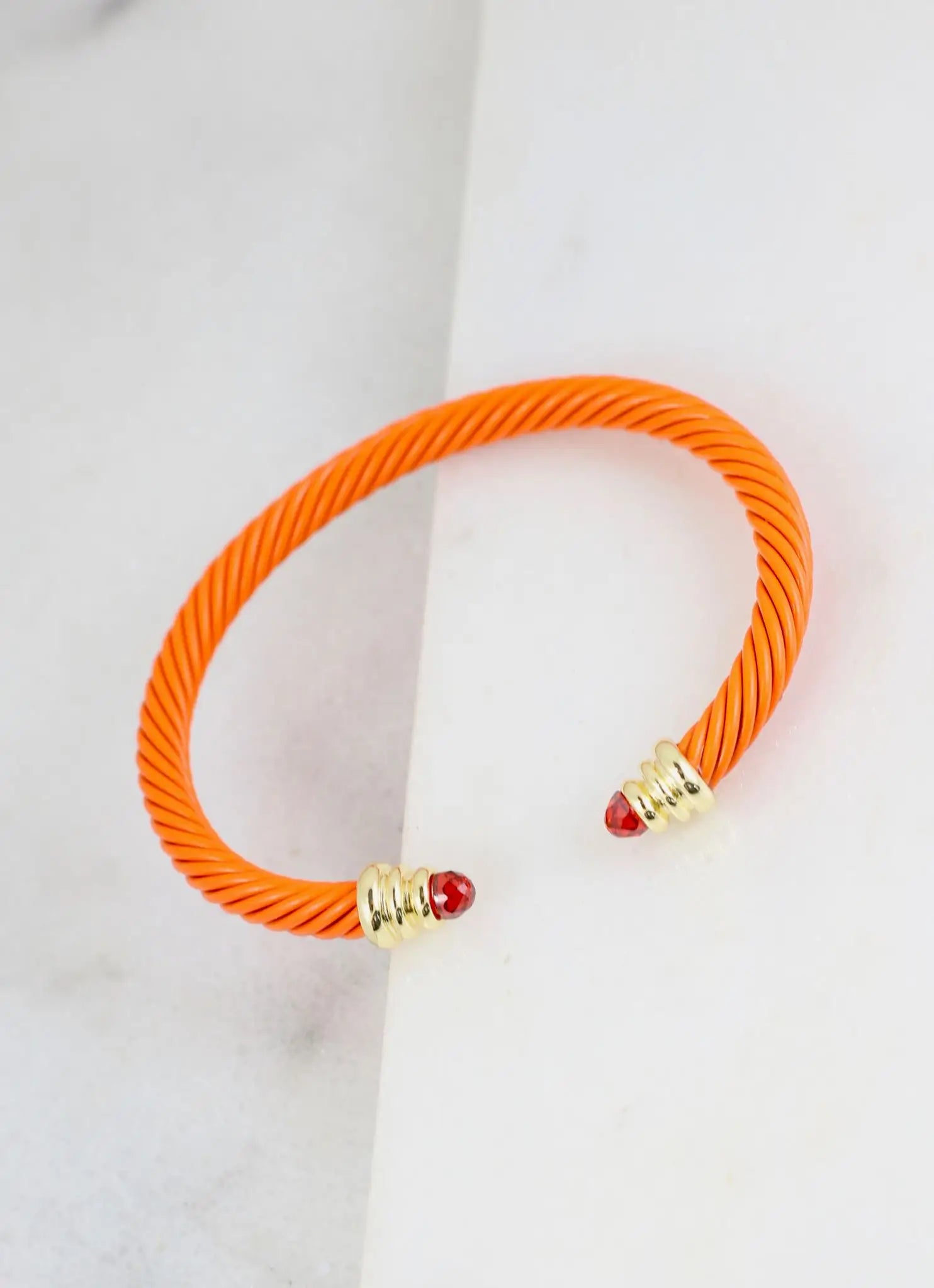 Windham Cable Cuff Bracelet with Accent Ends Orange